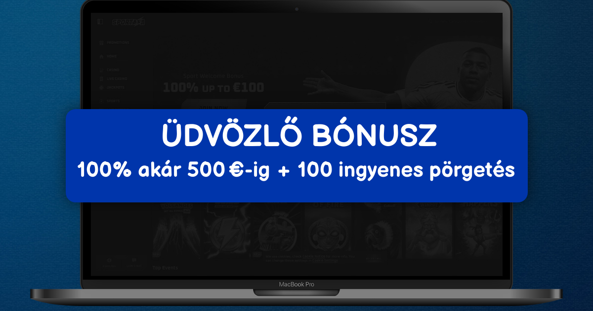- Első befizetés: 100% bónusz 100 000 forintig + 100 ingyenes pörgetés